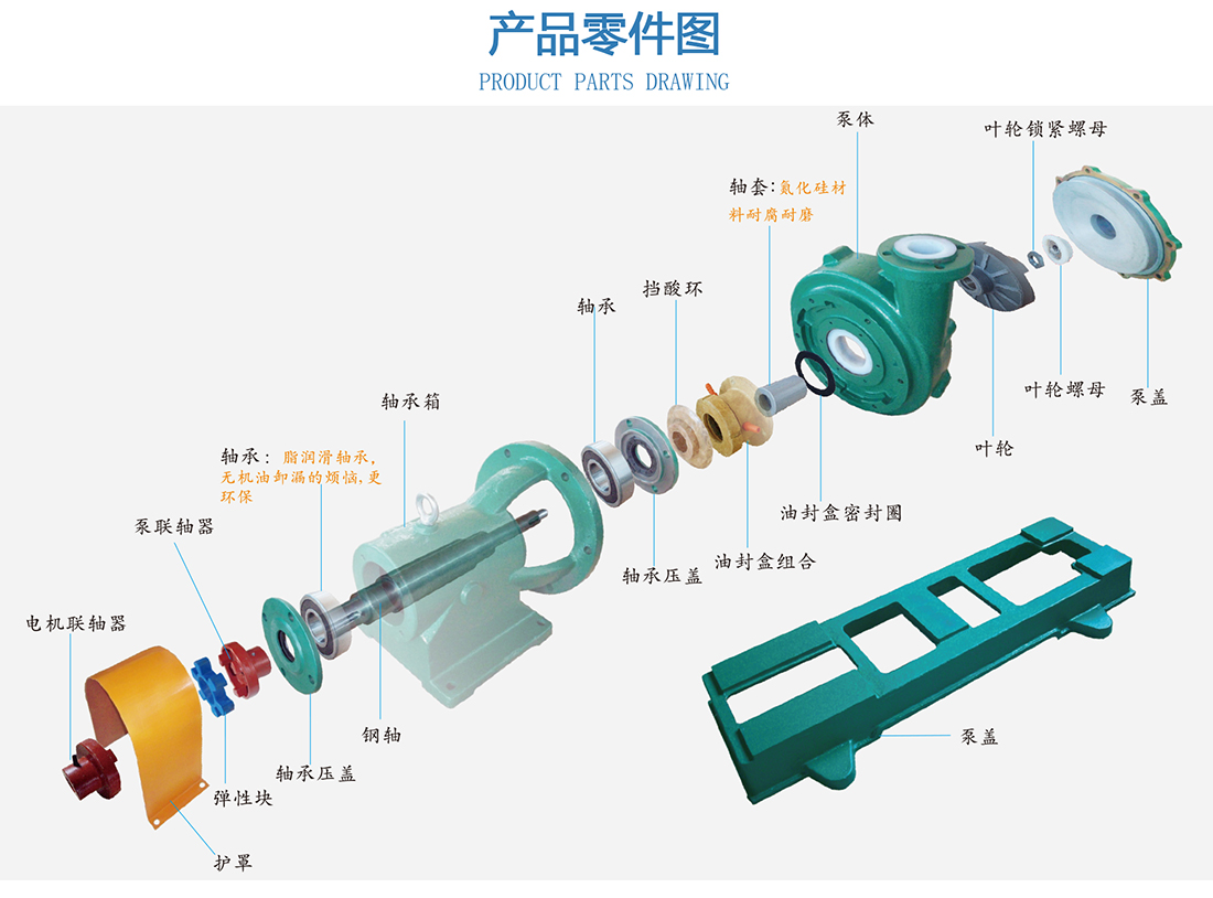 設(shè)計(jì)特點(diǎn):半開式葉輪、單級(jí)單吸懸臂式離心泵,過流部件全部采用超高分子量聚乙烯緊襯制造,襯層不小于8mm。用途:該泵具有耐腐耐磨的優(yōu)良性能,廣泛適用于各種不同的工況,如硫酸磷肥業(yè)(磷酸料漿、含硅膠的氟硅酸、母液等);有色金屬冶煉業(yè)(鋅、鉛、金、銀、銅錳鈷稀土等濕法冶煉的各種酸液、腐蝕性礦漿料漿電解液等);水處理;鋼鐵企業(yè)等行業(yè),即適用清夜也使用料漿。流量范圍:10T/h-1600T/h,揚(yáng)程范圍:20m-50m,功率范圍:3kw-400kw,運(yùn)行溫度:-20℃—80℃??筛鶕?jù)實(shí)際工況要求變更配置。