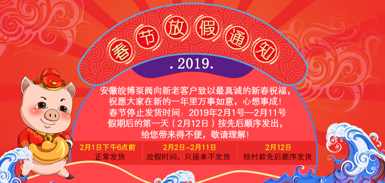 因假期造成的不便,請(qǐng)?jiān)?!如果您有任何緊急事項(xiàng),請(qǐng)致電15956315335(蔣經(jīng)理)。再次感謝您對(duì)皖博泵閥的關(guān)注和支持!