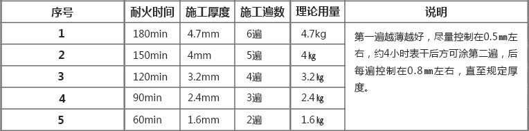 室內(nèi)薄型鋼結(jié)構(gòu)防火涂料綜合了膨脹型防火涂料及無機(jī)輕體隔熱涂料的優(yōu)點(diǎn),在遇火時(shí)表層能迅速膨脹發(fā)泡,形成致密均勻的泡沫隔熱層,同時(shí)無機(jī)輕體材料具有很好的隔熱效果,而達(dá)到延緩升溫時(shí)間的目的,從而延長了防火時(shí)間。